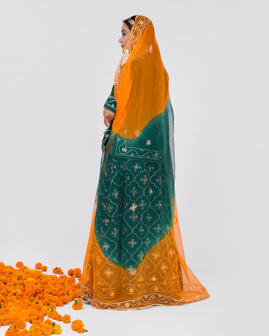 Sea Green Copper Moti Zardozi Rajputi Poshak