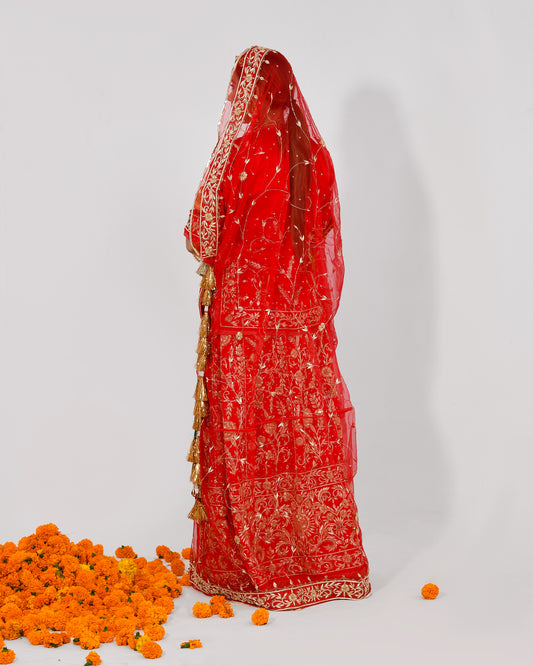 Zardozi Work Peach Rajputi Poshak