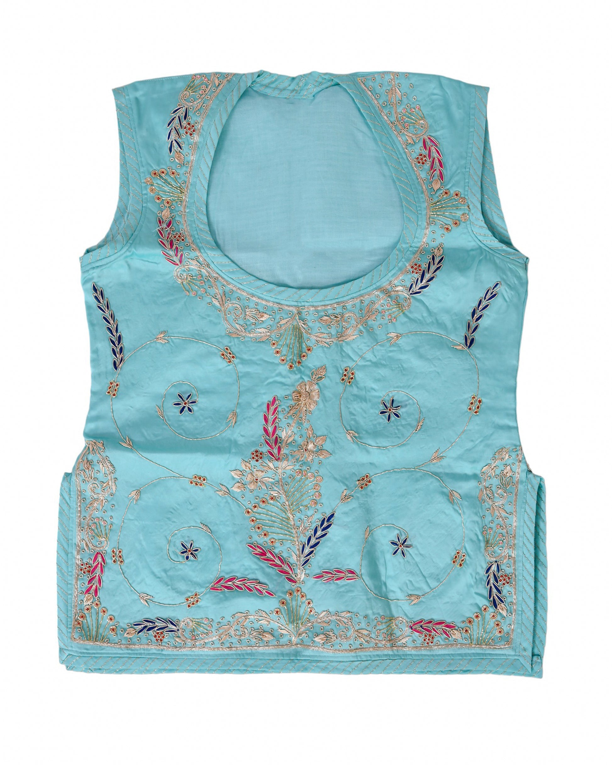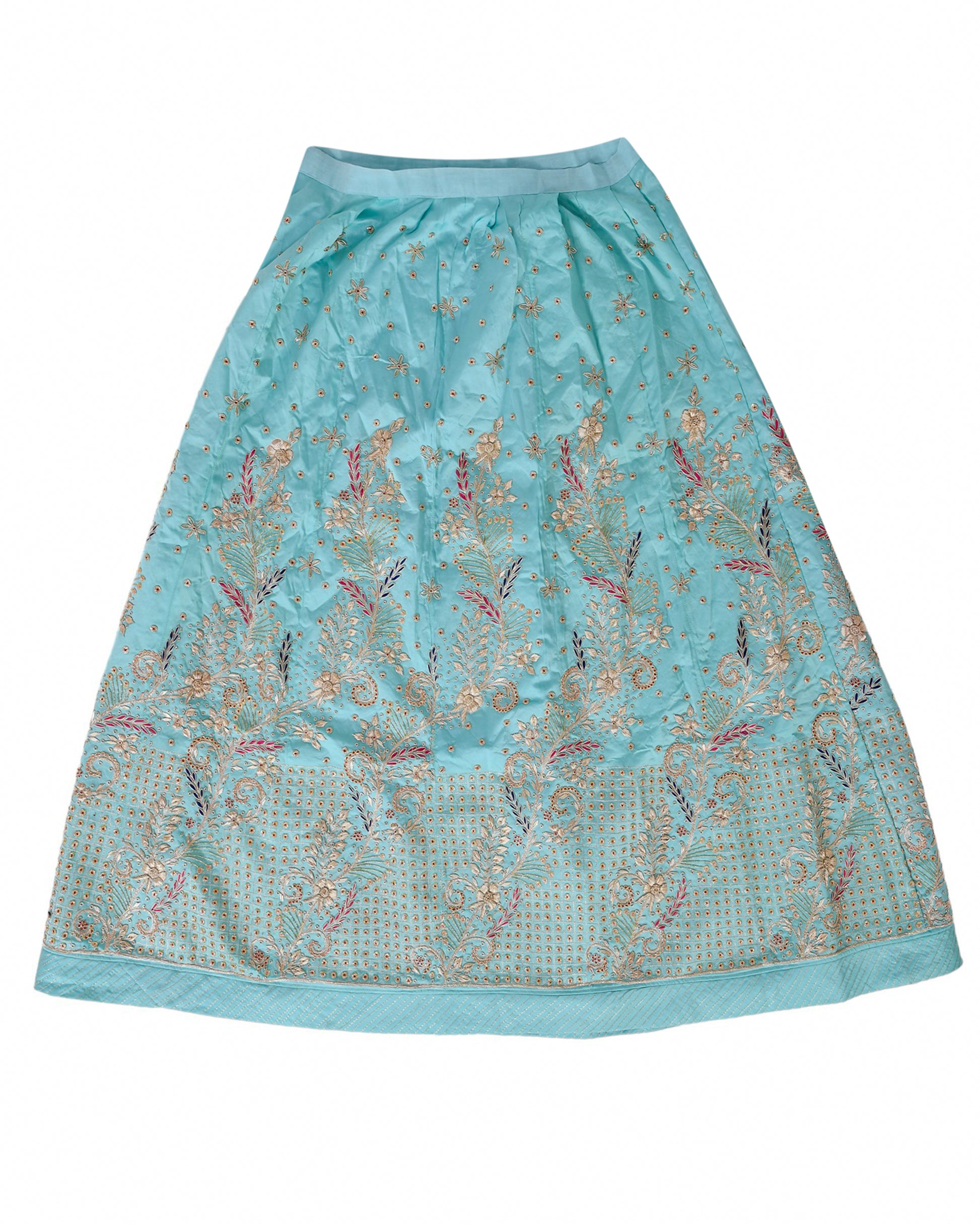 Introducing "Arunika" – where elegance meets tradition in every stitch. Our enchanting ethnic wear in a mesmerizing shade of blue is crafted from luxurious bamber satin fabric, offering a graceful drape that accentuates your beauty. Adorned with meticulous hand-embroidered dabka work and intricate zardoji detailing, Arunika is a masterpiece that captures the essence of timeless artistry.