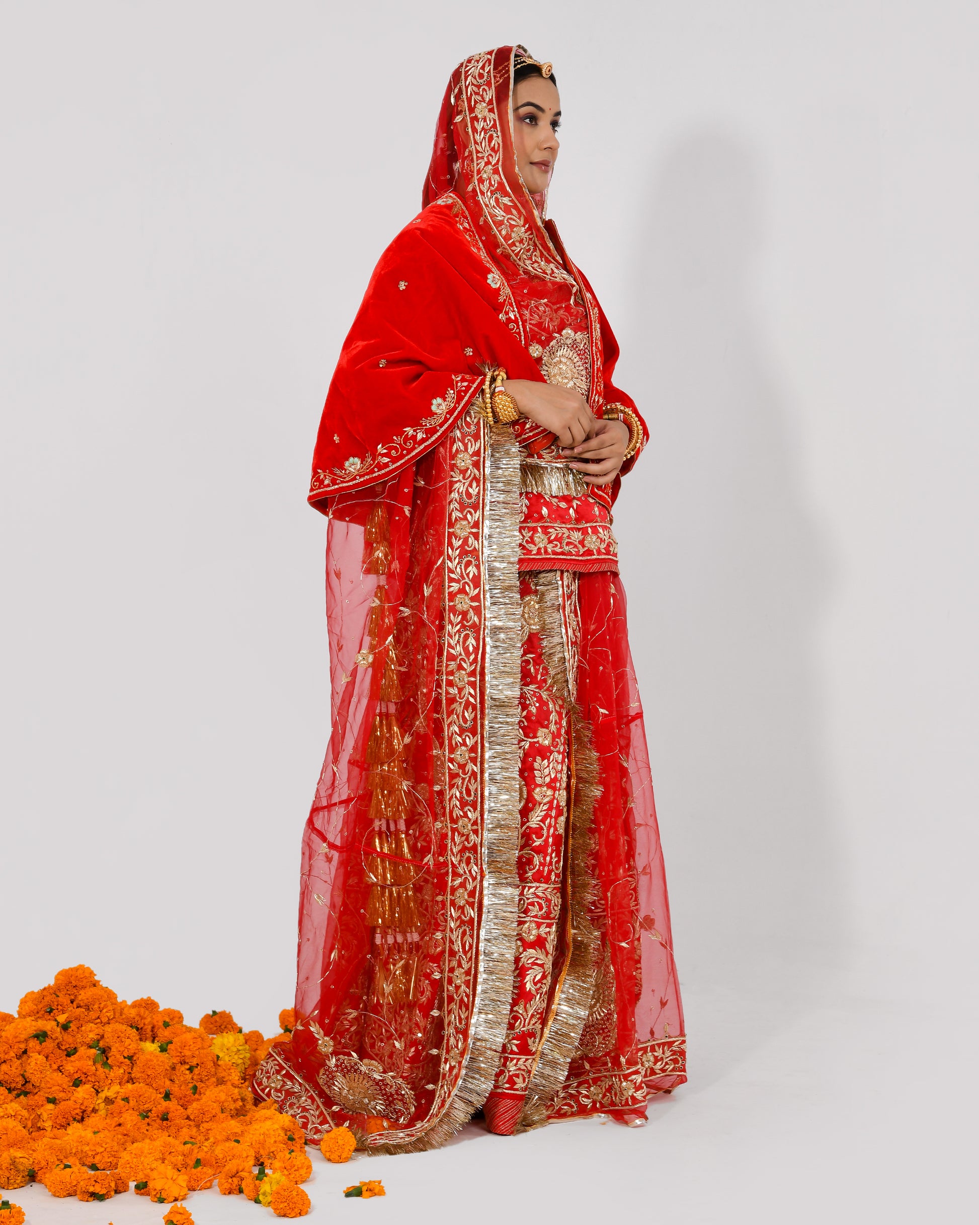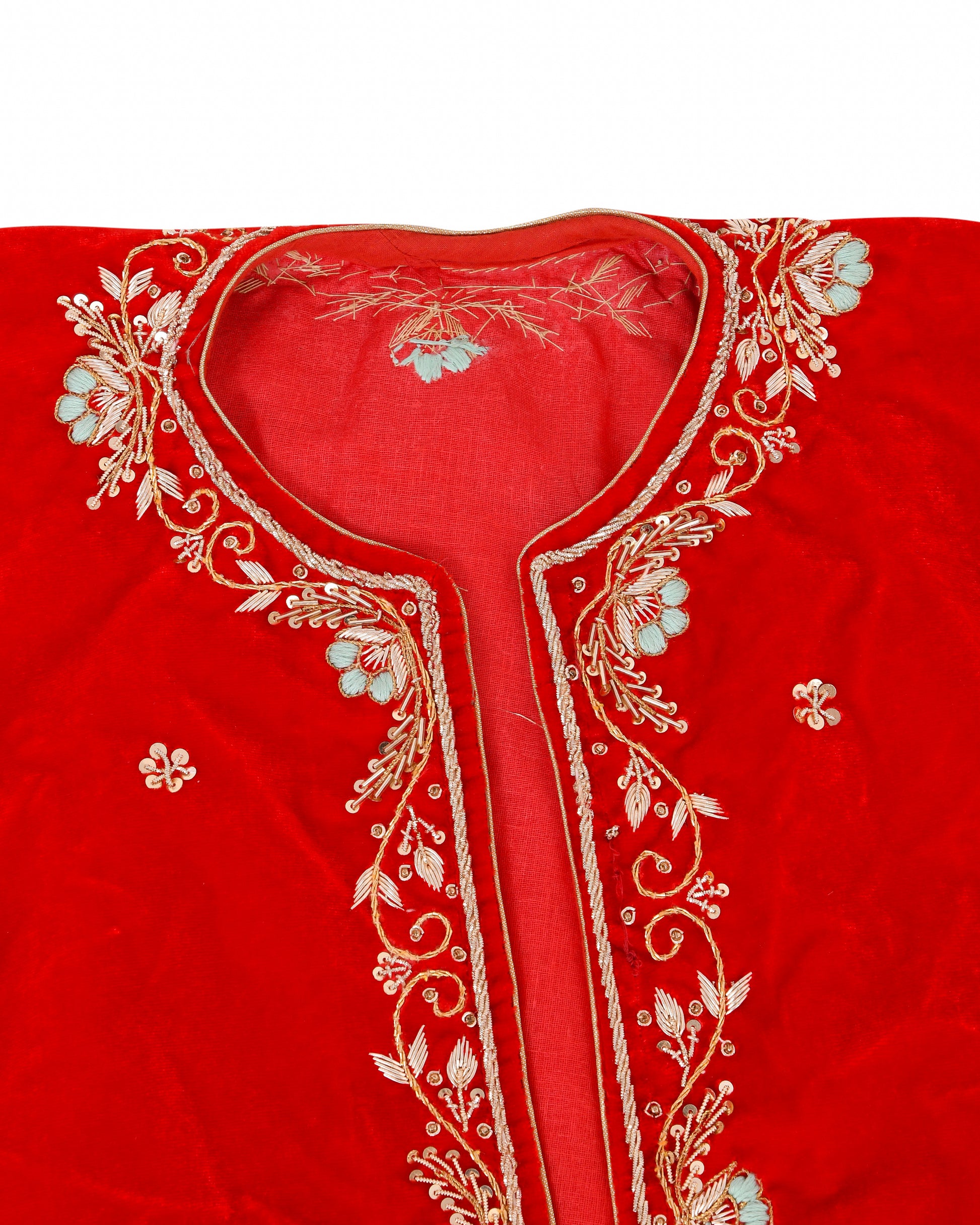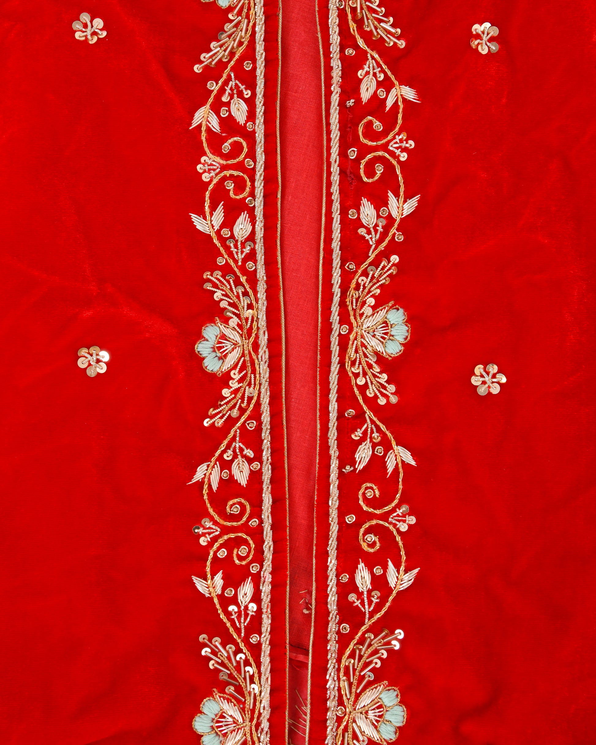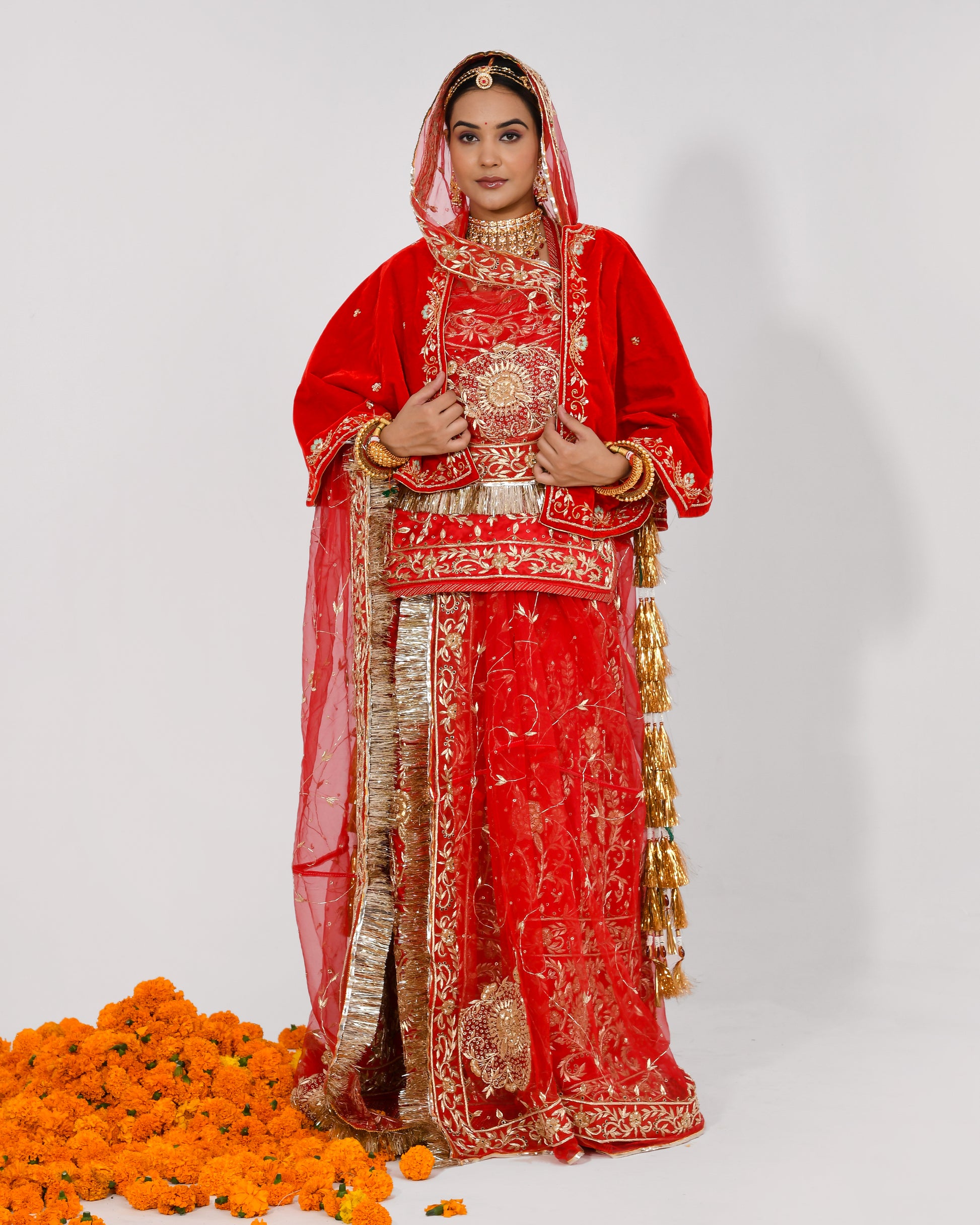Elevate your style with our "Reeva" Regal Rajasthani Reed Velvet Poncho—a luxurious garment that epitomizes the heritage of Rajasthan. Hand-embroidered with exquisite jardoji work, this poncho is a fusion of traditional artistry and contemporary sophistication, crafted from premium velvet fabric to ensure unmatched comfort and opulence.