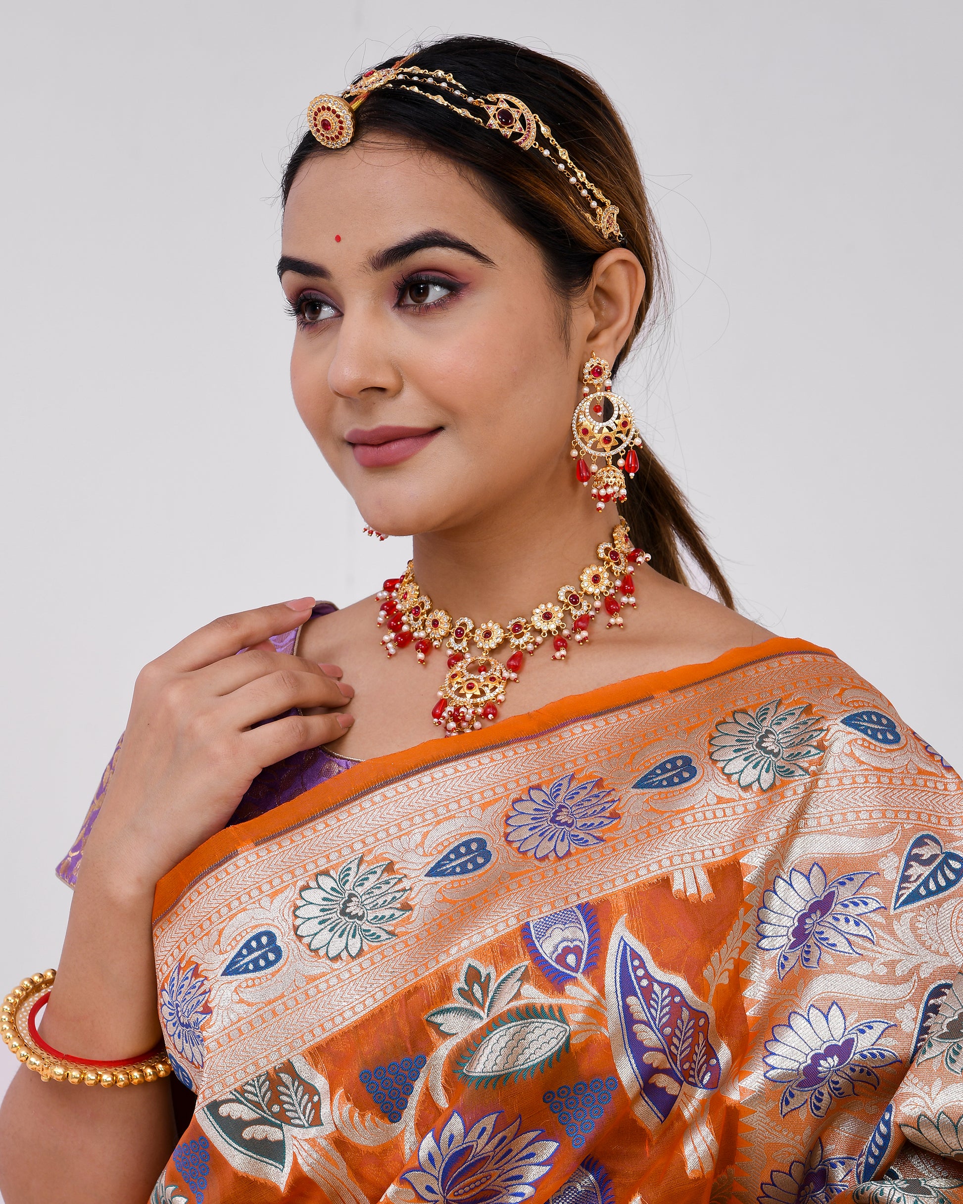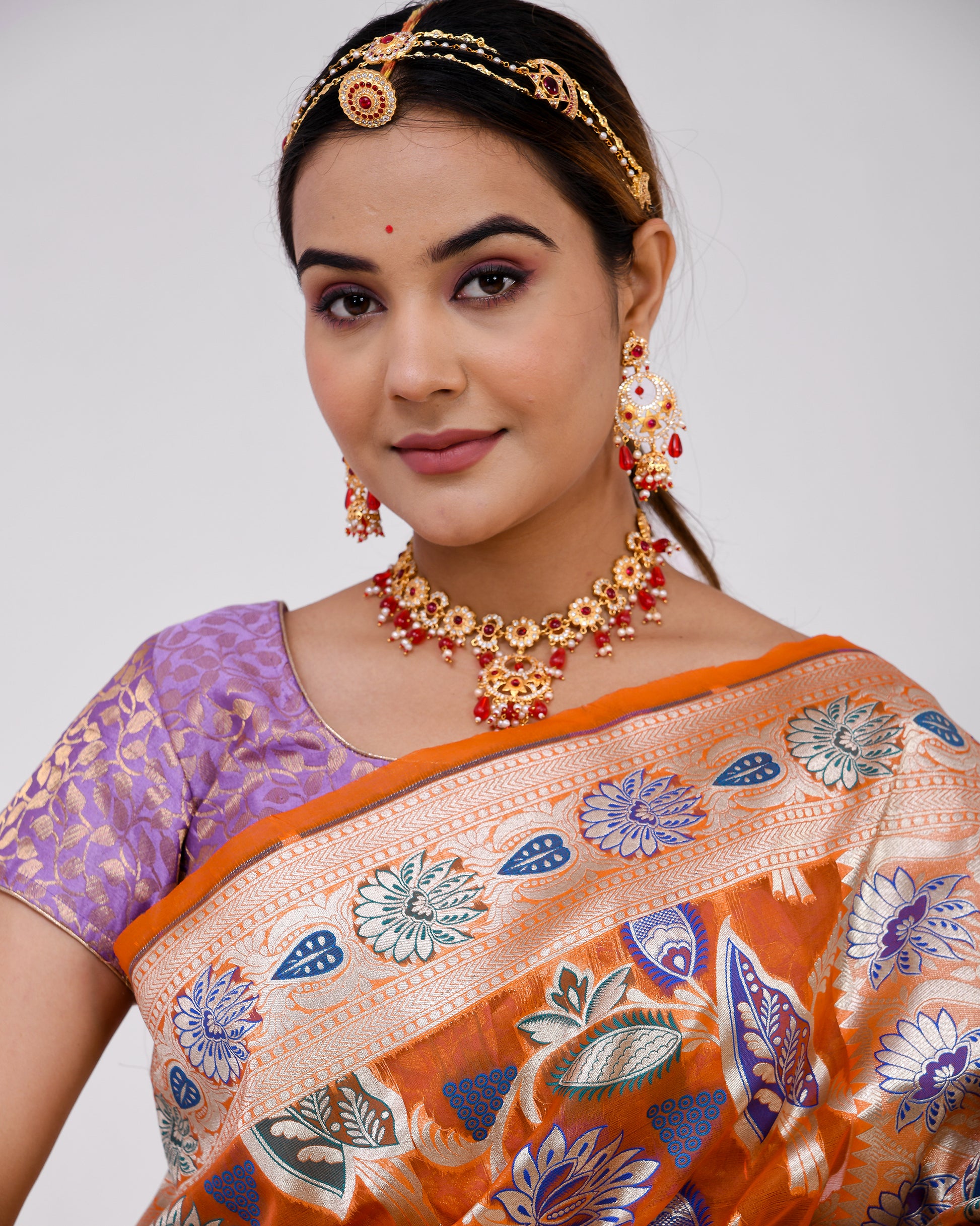 Introducing Saubhagyavati Banarasi Dusty Orange Saree: A Radiant Heritage in Every Thread