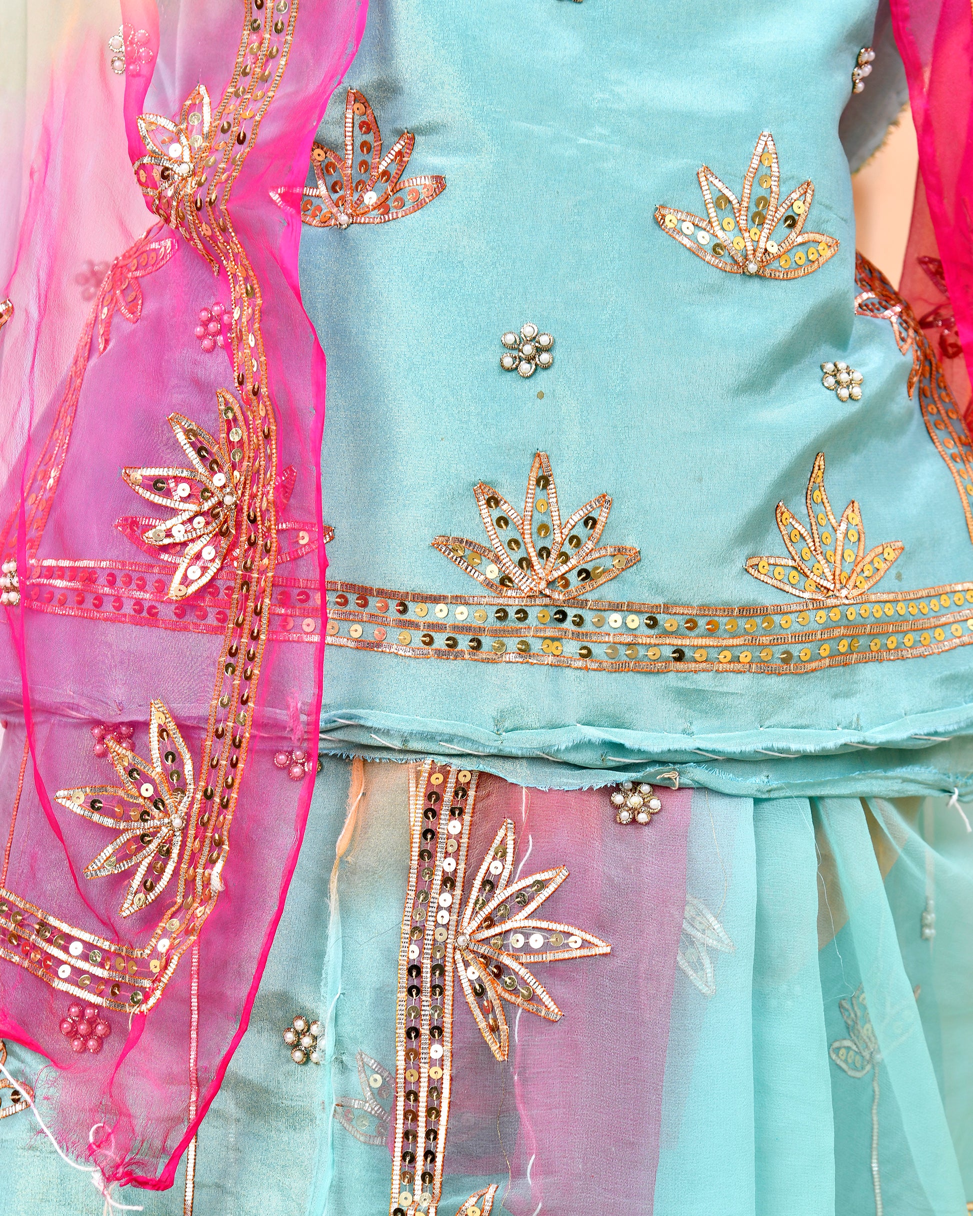 Sea Green Copper Moti Zardozi Rajputi Poshak